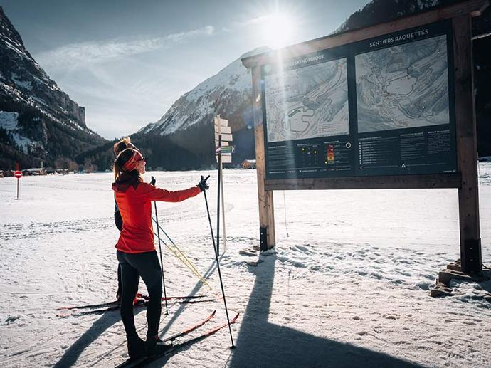 À proximité des plus grands domaines skiables, la tranquillité, l'authenticité et le charme d'un village traditionnel. 49 km de pistes de ski de fond damées quotidiennement, 27 km d'itinéraires raquettes balisés et sécurisés.